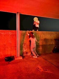 「無理~!!」と叫ぶI職員を後ろから無理やり押し上げるドS全開のO職員😆