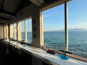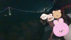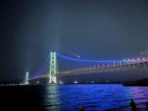 夜になるとレインボーに光る明石海峡大橋が綺麗に見えます。
