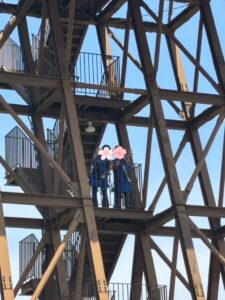 飛ぶ前からノリノリで階段から手を振るふたり、余裕です😆