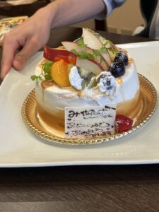 別日ですが、職員食事会の時に事前に職員同士が打ち合わせて誕生日ケーキをサプライズで